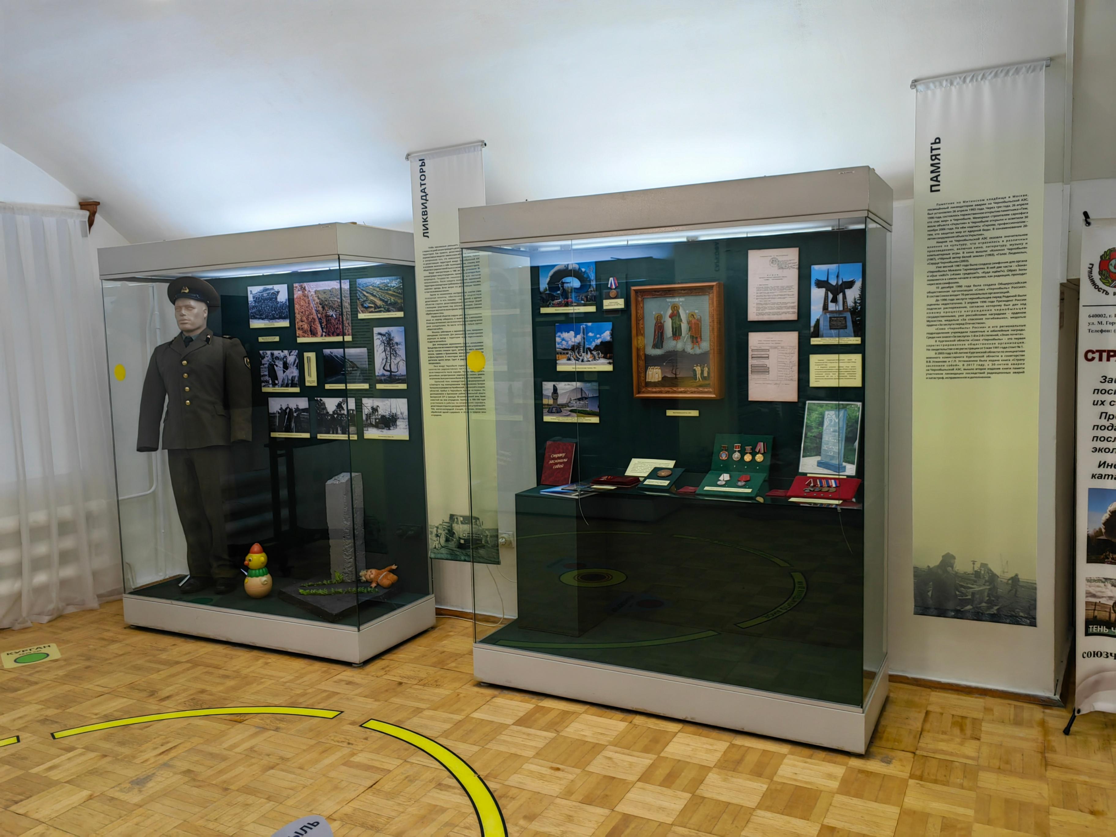 26 апреля 1986 года произошла самая крупная техногенная катастрофа XX века. Экскурсия содержит подробную хронологию событий, приведших к аварии, и принятые меры по её ликвидации. 2131 житель Зауралья принял участие в ликвидации последствий в составе Уральского полка. В их обязанности входило: замена грунта, дезактивация домов и машин, захоронение «рыжего леса» в 30-километровой зоне отчуждения. Все работы проиллюстрированы фотографиями, в том числе из личных архивов. Широкий предметный ряд представлен на экспозиции: боевая одежда пожарного образца 1986 года, общевойсковой защитный комплект, дозиметрические приборы, респираторы, подлинные награды ликвидаторов, а также список икон «Чернобыльский Спас».