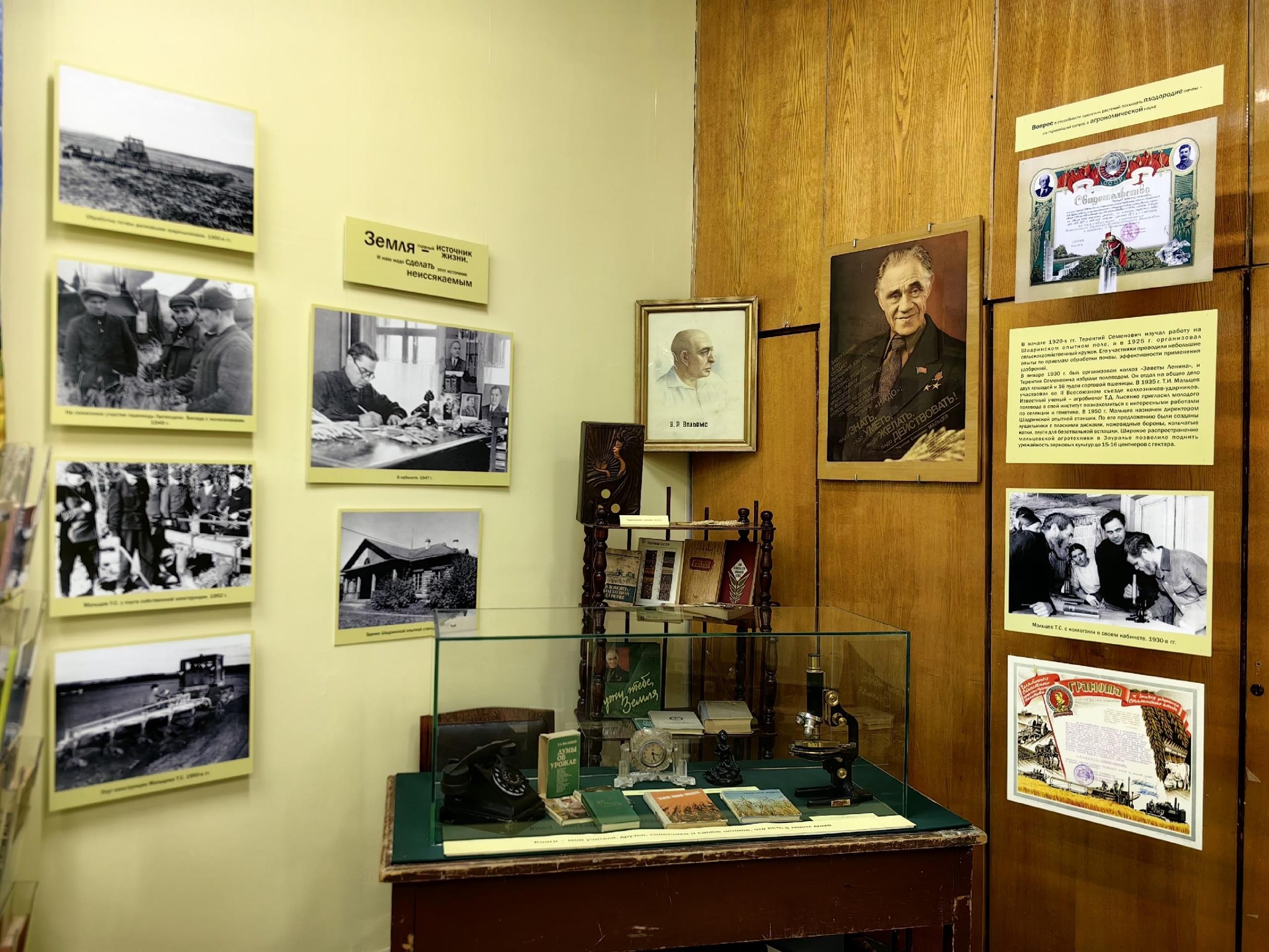 Экскурсия посвящена 130-летию со дня рождения выдающегося деятеля сельского хозяйства Курганской области Терентия Семеновича Мальцева. Экскурсанты на выставке познакомятся с подлинными предметами – личными вещами Терентия Семеновича, которыми он пользовался на протяжении своей жизни. Это рабочие инструменты – лемех, плуг, разработанный Мальцевым, лупа, которой он пользовался в своей домашней лаборатории, изучая зерна и выводя новые сорта, а также и предметы, содержащие в себе память и дань уважения знаменитому хлеборобу: сувенирная ваза, ковер с изображением Мальцева. Во время экскурсии по интерактивной выставке посетители смогут погрузиться через мультимедийные средства в атмосферу работы и жизни Мальцева: это системы направленного звука, содержащие фоновое звучание, погружающее экскурсанта в условия, в которых Терентий Семенович Мальцев оказывался, работая в поле, монофоны, в которых можно услышать голос Терентия Семеновича, записи его рассказов о том, как он работал, создавал свой колхоз, как он, трудясь в поле годами и изучая науку, создал метод безотвальной вспашки земли.